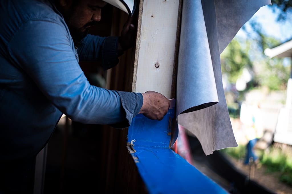 A liquid-applied flashing such as HydroFlash® LA applies like a caulk or adhesive, so it’s ideal for challenging areas of the envelope where a tape-style flashing would have to be cut and bent. This includes window corners, curves, and awkward shapes. HydroFlash LA works to create monolithic sill flashing and prevent leaks, and is an easy solution for filling imperfections and penetrations. Simply squeeze out a bead and smooth to 20-40 wet mils.